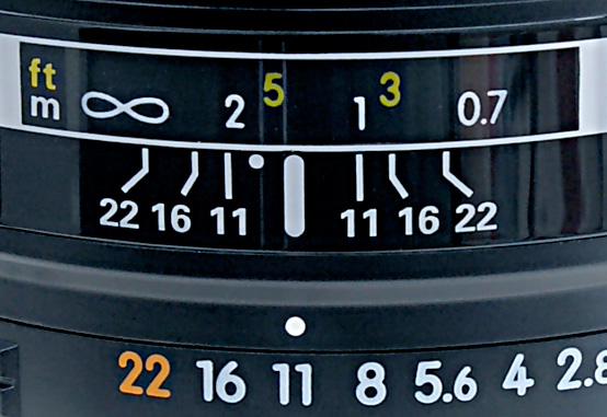 На некоторых объективах (особенно старых) нанесена маркировка, которая очень наглядно показывает ГРИП при использовании тех или иных значений диафрагмы.
