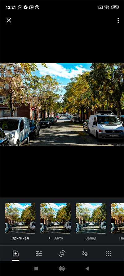 Первая пиктограмма - эффекты. Режим "Авто" обычно дает хорошие результаты для любительских фото - он слегка высветляет тени.