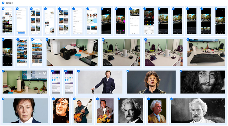 Также здесь доступны и другие категории групп: скриншоты, селфи, видео, панорамы, отсканированные фото и документы с помощью приложения "Фотосканер" (кстати, довольно интересное, оно умеет убирать блики при фотографировании фотографий), фото с движением.