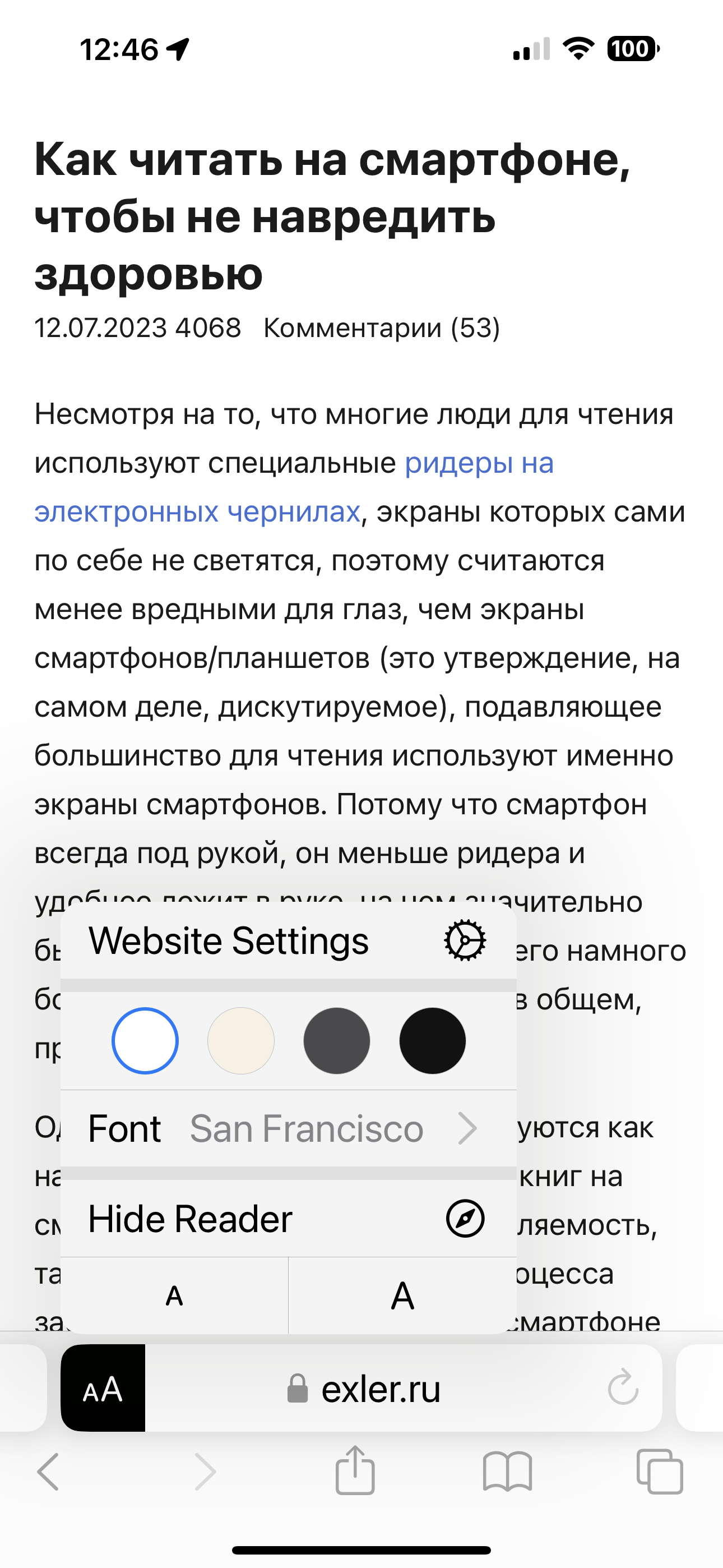 Несмотря на то, что многие люди для чтения используют специальные ридеры на электронных чернилах, экраны которых сами по себе не светятся, поэтому считаются менее вредными для глаз, чем экраны смартфонов/планшетов (это утверждение, на самом деле, дискутируемое), подавляющее большинство для чтения используют именно экраны смартфонов. Потому что смартфон всегда под рукой, он меньше ридера и удобнее лежит в руке, на нем значительно быстрее листаются страницы, у него намного больше настроек текста и фона - в общем, преимуществ масса.