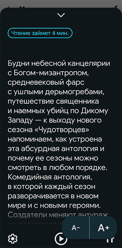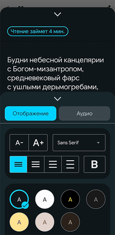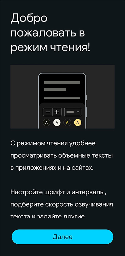 Что делать, если в каких-то приложениях никакими путями не получается изменить размер шрифта, поменять фон и так далее? Как раз для таких случаев компания Google разработала специальное приложение "Режим чтения".