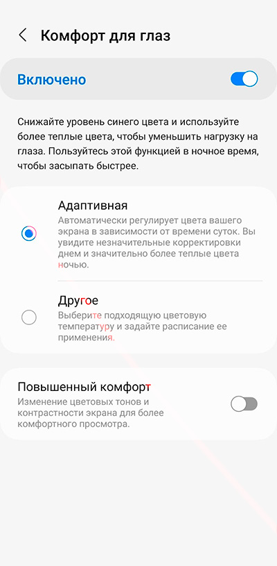 Если же на вашем смартфоне нет режима чтения (такое может быть со старыми версиями Android), тогда можно в Google Play задать для поиска "фильтр синего цвета", и вам там выдадут кучу приложений, которые могут это сделать.