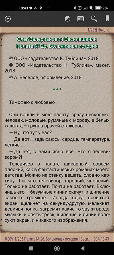 P.S. Конечно, вариант про книгу воспринимаю, как шутку. Уже давно читаю только на планшете. И с тех пор стал читать больше.