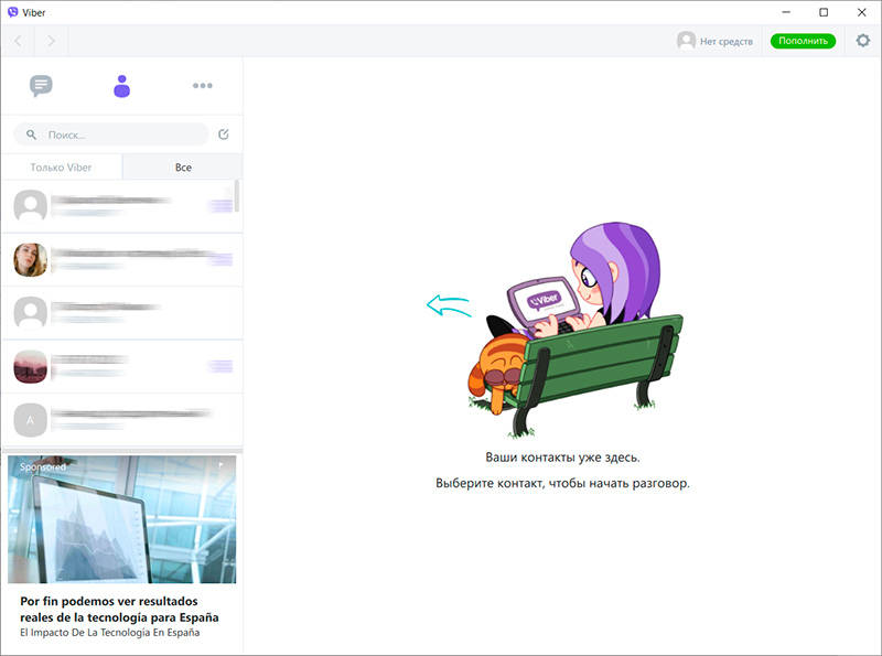 После активации приложение заработает, причем, несмотря на то что оно активируется со смартфона, после запуска приложение со смартфоном уже никак не будет связано и, даже если смартфон выключить, это приложение будет принимать и отправлять сообщения, что очень удобно (особенно для случаев, если вы, например, потеряли смартфон или оставили дома - без Viber на работе вы не останетесь).