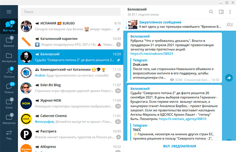 Один из самых продвинутых и удобных мессенджеров, в котором кроме обычных, видео- и голосовых чатов большое распространение получили новостные телеграм-каналы.