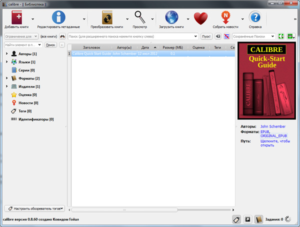 После этого книги будут занесены в библиотеку Calibre.