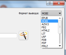 Теперь следующее действие - конвертирование. Чтобы сконвертировать сразу все книги скопом, нажмите "Преобразовать книги". Там появится окно выбора, где в формате вывода нужно выбрать "MOBI" (или любой другой, нужный вам формат).