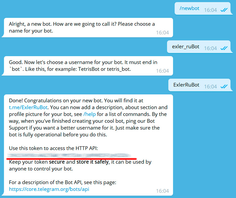 И после создания вашего бота BotFather выдаст вам ту самую строчку токена, которую нужно, во-первых, ввести в окошке Manybot, а во-вторых, где-то сохранить как факт доказательства того, что именно вы - создатель данного телеграм-бота.