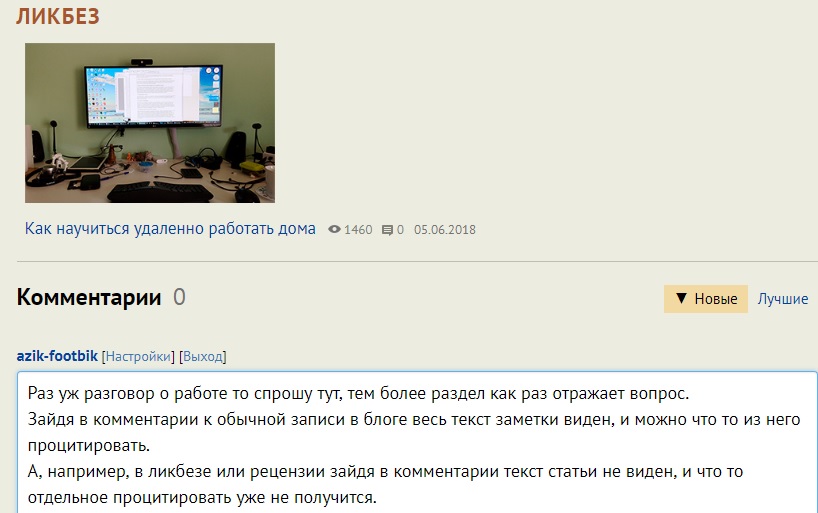 А, например, в ликбезе или рецензии зайдя в комментарии текст статьи не виден, и что то отдельное процитировать уже не получится.