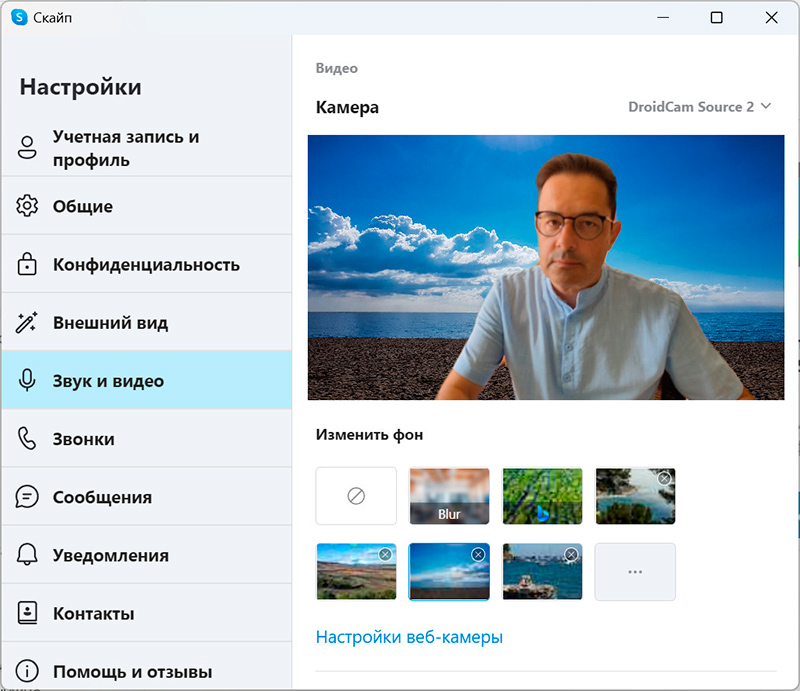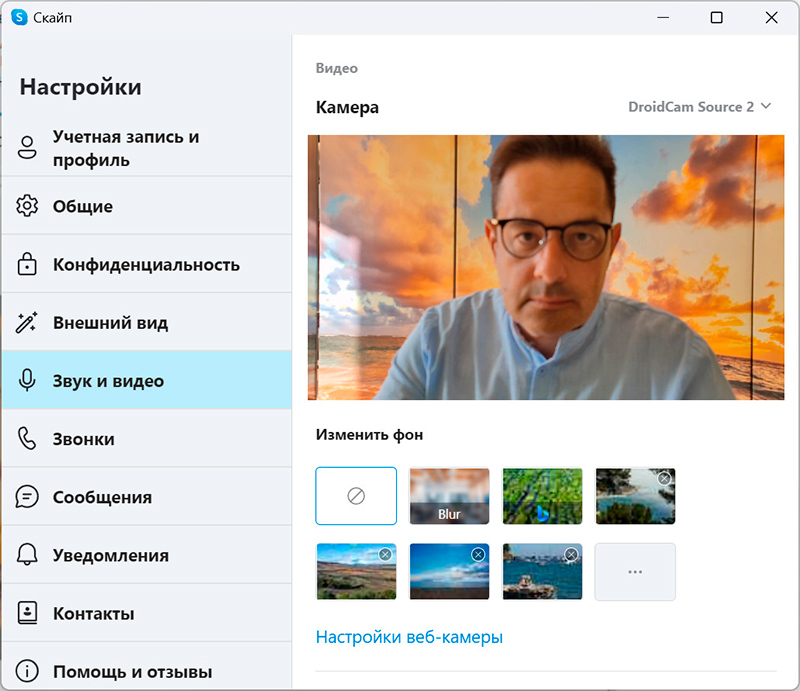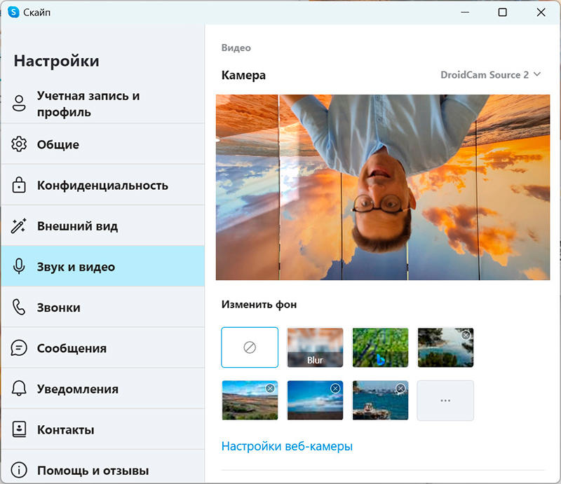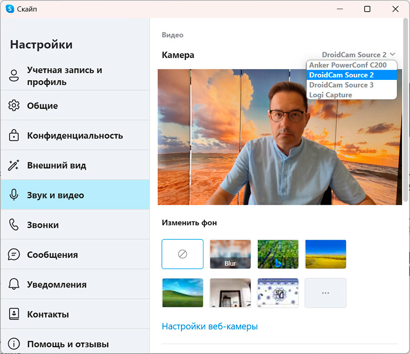 Ну и теперь в списке видеоисточников любых программ для видеоконференций и стриминга появляется устройство DroidCam, и вы на него можете переключаться. На самом деле там появятся два устройства DroidCam. Почти во всех приложения будет работать только Source 2, а Source 3 сделано, видимо, для поддержки какого-то другого протокола.