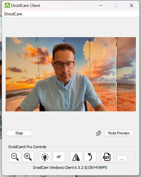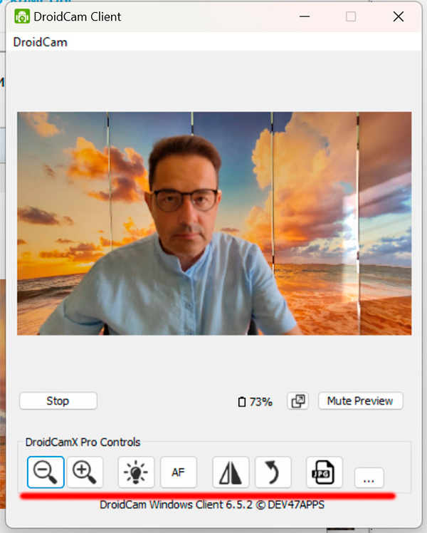 Вот так это выглядит в самом приложении DroidCam на ПК.