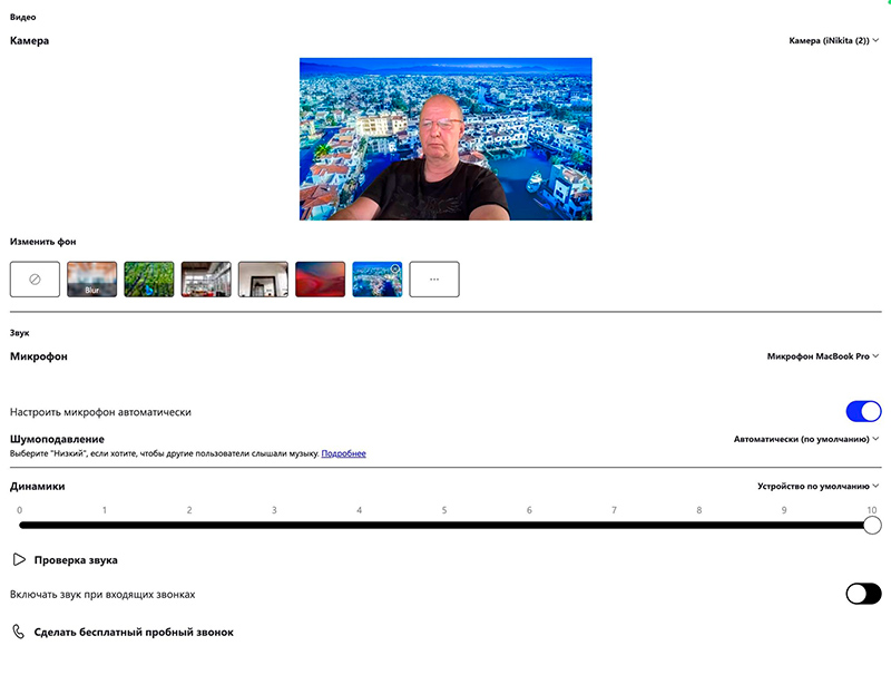 Между тем, когда ваш айфон и макбук находятся в одной домашней сети или же подключены к одной и той же сети Wi-Fi, то при заходе в настройки любой программы для видеозвонков - Skype, Zoom, Facetime и так далее - в разделе видеоисточников будет ваш айфон. И мало того, что вы там можете его выбрать, там же в пункте управления в разделе "видеоэффекты" можно будет отметить опции "в центре внимания", "портрет" и "студийный свет", и при этом система сама будет вас центрировать в кадре даже в том случае, если вы айфон не ставили на штатив, а просто прислонили его, например, к монитору макбука, также в этом случае эффект накладывания нужного вам фона на ваше изображение работает сильно лучше, чем с веб-камерой - там почти отсутствуют всякие артефакты и затемнения при движениях головы.