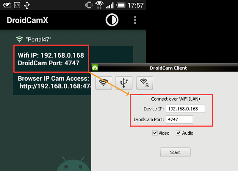 Работает это все очень просто: запускаете на смартфоне DroidCam, приложение вам напишет IP адрес смартфона в домашней сети и адрес порта (он обычно не меняется).