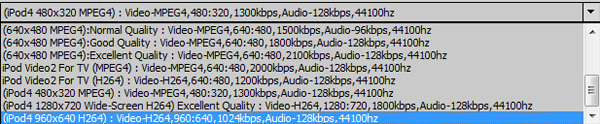 Конвертирование под iPod. Можно выбрать различные виды айподов, варианты качества и так далее.