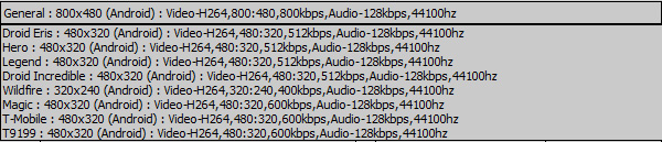 Но обычно для решения подобной задачи я пользуюсь перекодировщиком CloneDVDMobile (платный). Простой, но одновременно весьма функциональный перекодировщик. Содержит кучу предустановленных профилей, умеет перекодировать в 1, 2, 4 прохода (для повышения качества; обычно достаточно двух проходов), гибко настраивается.