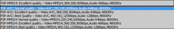 Для PSP, у которой экран 480х272 предлагаются разрешения: