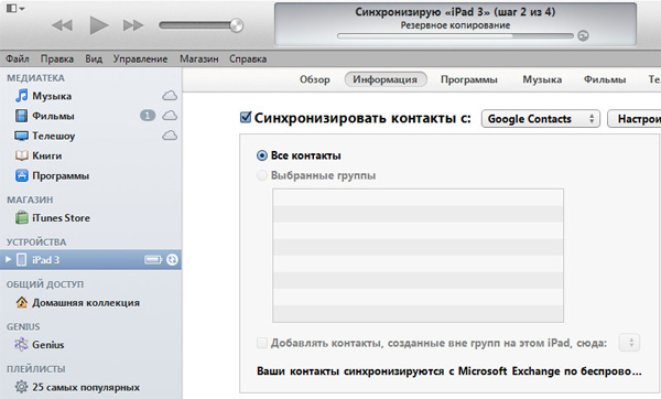 Некоторые пользователи считают, что если в iTunes включить синхронизацию с контактами Google, то все айфонные контакты туда тут же переползут. Это, к сожалению, не так. Уже имеющиеся контакты не переползут.