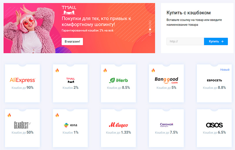 Там показываются ссылки на кучу самых разных площадок (включая, замечу, не только Ali и остальные китайские вроде Gearbest и Tmall, но и российские "Евросеть", "М.видео", "Связной" и так далее), и дальше вам требуется просто щелкнуть по соответствующей площадке - после этого работаете с ней как обычно, но при этом по каждой покупке через некоторое время получаете соответствующий кешбэк (возврат части денег) на свой счет, откуда деньги можно выводить самыми разнообразными способами.