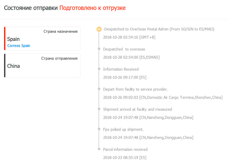 - E-Packet - ускоренный вариант предыдущей доставки - по Китаю посылка идет курьерской службой, по России - обычной почтой. Обычно стоит рублей на 100-200 дороже стандартной, хотя часто это бывает стандартный бесплатный способ доставки. Заказ обычно приходит очень быстро (за пару недель в СПб, но тут многое зависит от нашей почты, на которую китайцы повлиять не могут). Соответственно, защита покупателя обычно на 35 дней. Если товар не получен за это время, можно открывать спор. Мой любимый тип доставки