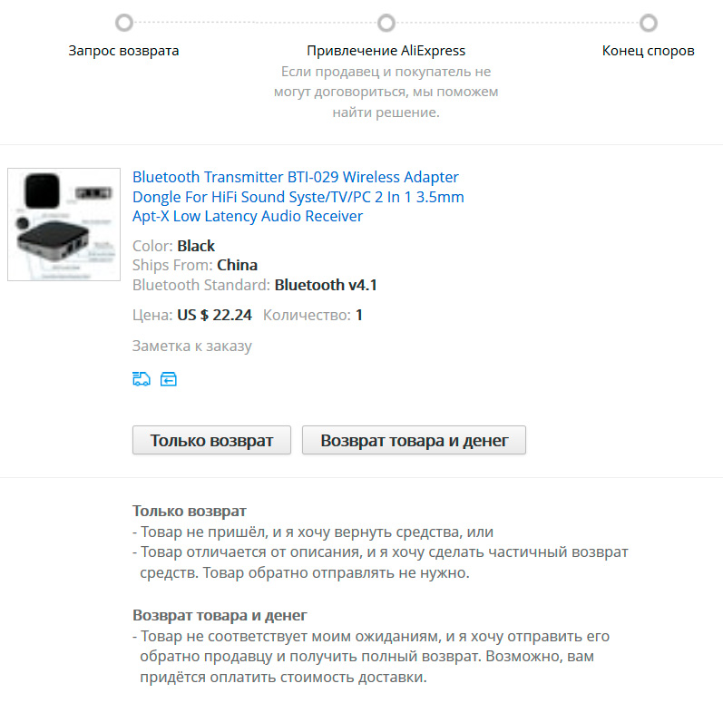 Далее спор отправляется продавцу, и он вам предлагает какое-то решение. Если вы с ним не согласны, то в спор вступает служба Aliexpress, и уже они предложат вам вариант решения проблемы.