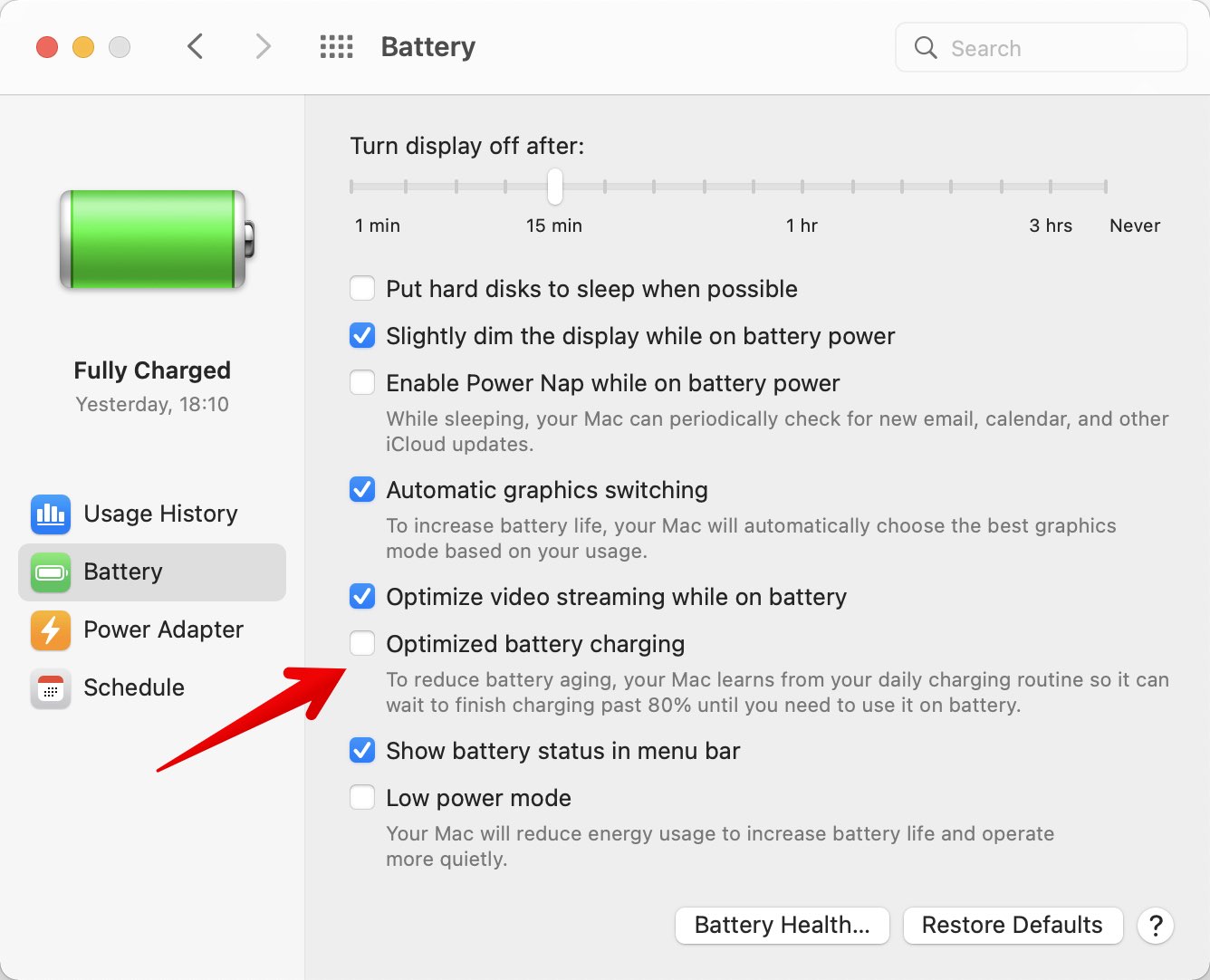 у меня макбук 2021 года через несколько дней работы на зарядке, он это дело просекает и разряжает аккумулятор до 80% и дальше уровень заряда стоит на этом уровне