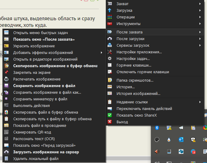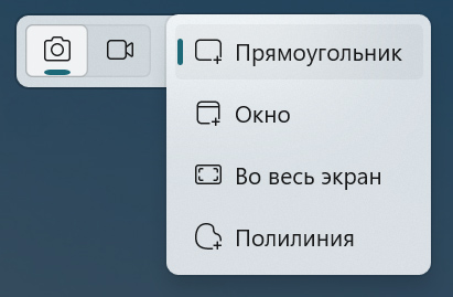 Также в панели инструментов, вызываемой по кнопке Print Screen, можно вызвать подменю, в котором выбирается захват прямоугольника, активного окна, всего экрана или произвольной фигуры.