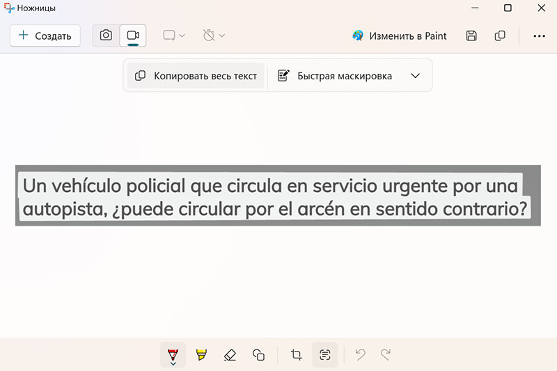 Принудительно запустил "Ножницы", не нашёл там опцию распознавания текста.
