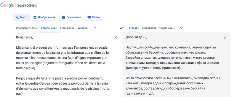 Перевод текста