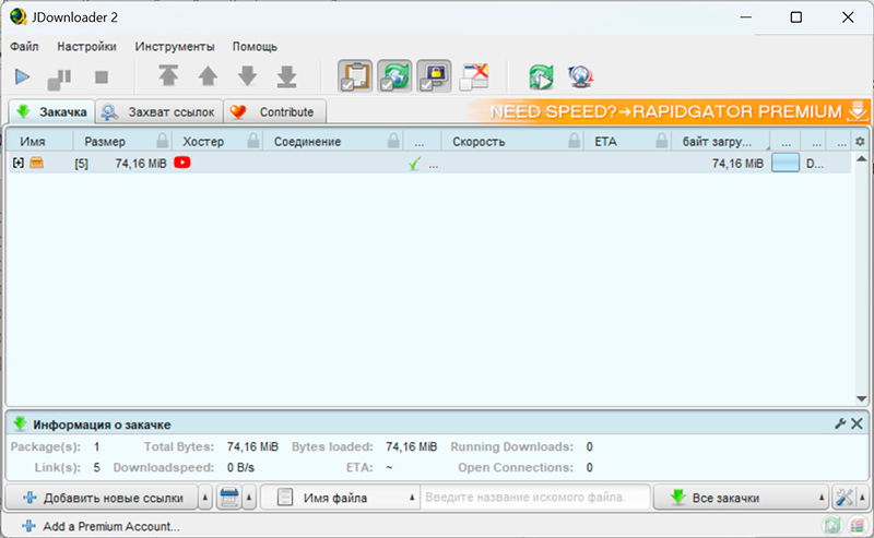Окно JDownloader 2