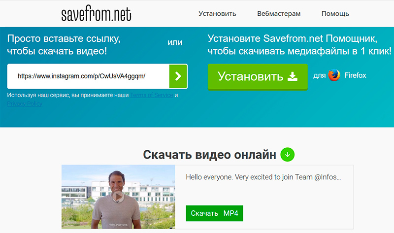 Savefrom.net из Инстаграма видео скачивает.