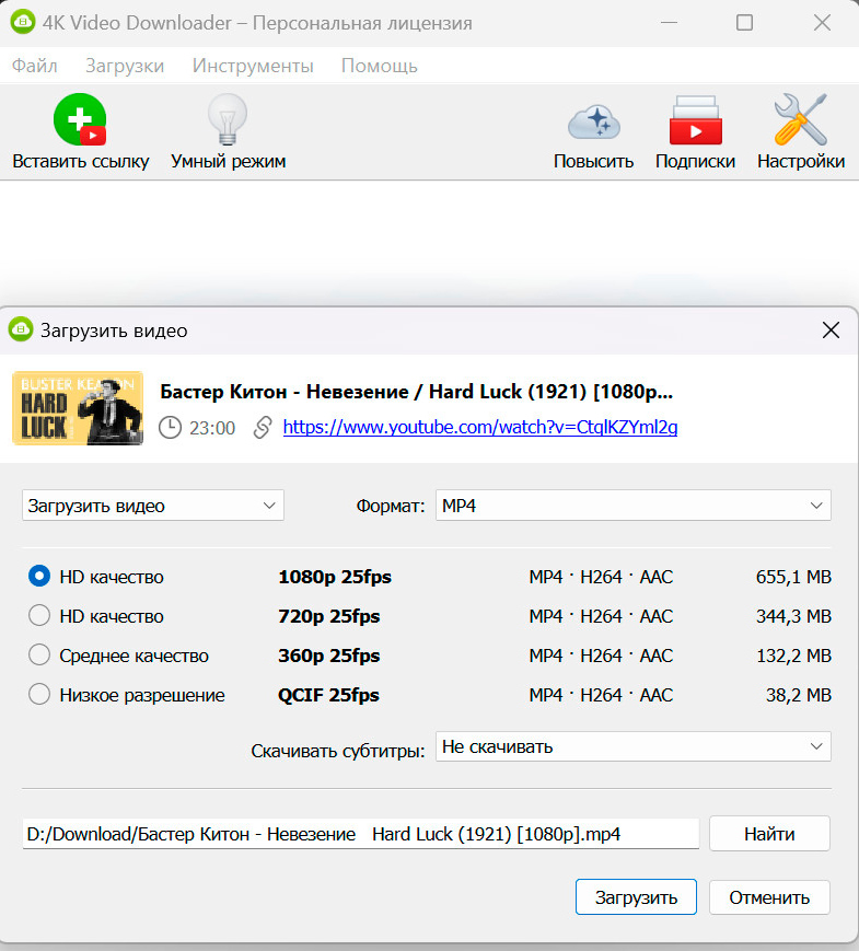 Лично мне также нравится 4K Video Downloader, и я давно им пользуюсь. Он умеет вытаскивать медиаконтент из Youtube, Vimeo, TikTok и Facebook в том числе в максимальном разрешении. Удобный интерфейс, высокая скорость работы.
