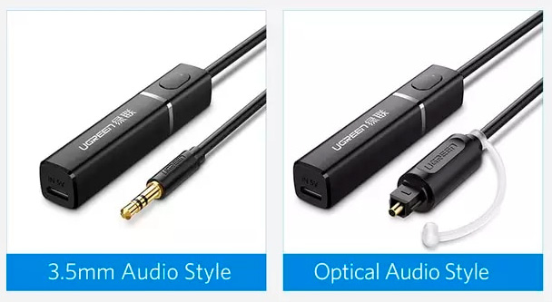 Это не проблема, потому что данный передатчик как раз и выпускается в двух видах - с мини-джеком под обычный аудиовыход и с головкой под оптический выход.