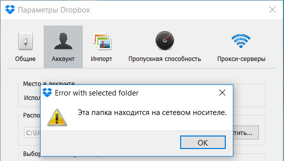 А ведь во многих случаях, особенно на современном этапе развития всяких твердотельных дисков, пользователям очень нужно, чтобы папка Dropbox была размещена на сетевом накопителе, особенно если там хранится большой объем данных.