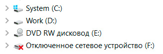 В системе подключенный таким образом диск все равно именуется "Отключенное сетевое устройство", однако все работает.