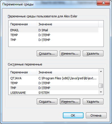 Для удобства лучше прописать более простой путь к этим переменным - например, к папке C:TEMP.