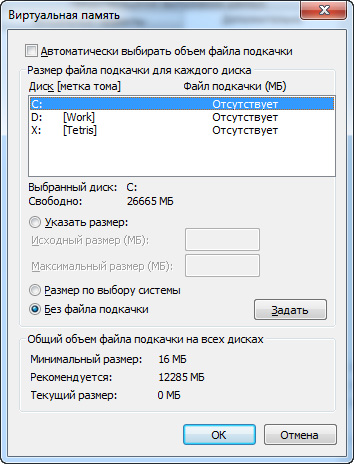 Отключение файла подкачки - самое глупое что может сделать пользователь, так как, в таком случае, запрос на выделение дополнительной памяти может провалиться совершенно неожиданно. Файл подкачки, кроме собственно своей основной функции, даёт пользователю время на исправление ситуации. 1 программа с утечкой памяти может забрать почти всю память, установленную в системе. В случае наличия файла подкачки до собственно фатального сбоя начнутся тормоза, во время которых пользователь сможет убить жадный процесс или хотя бы сохранить рабочие файлы и перезагрузить компьютер. Когда файла подкачки нет, очередной запрос памяти просто закончится сбоем и далеко не факт что в выделении памяти откажут именно программе-виновнику, а также что программа-пожиратель памяти после этого сбоя завершится и оствободит ту память, которую забрала. Процесс сохранения файлов также, скорее всего, потребует выделения памяти и поэтому сохранение рабочих файлов в случае отсутствия свопа не удастся и работа результаты работы будут потеряны.