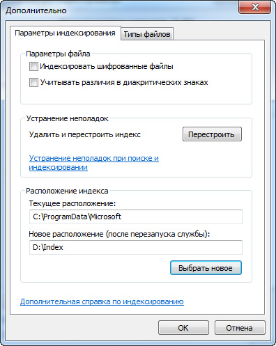 Windows 7 постоянно индексирует файлы на дисках, для того чтобы можно было осуществлять очень быстрый поиск по их содержимому. Данные индексации хранятся на системном диске. Они занимают не особенно много места, но их также лучше перенести на жесткий диск.