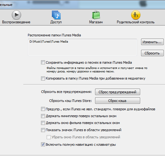 Также в iTunes обязательно нужно указать, что папки iTunes Media следует хранить на жестком диске - это делается в настройках iTunes: Правка - Настройки - Дополнительно.