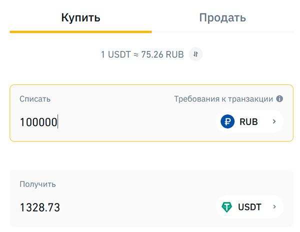 В разделе "Я хочу оплатить" вводите соответствующую сумму и в разделе "Я получу" видите, какую сумму USDT вы получите.