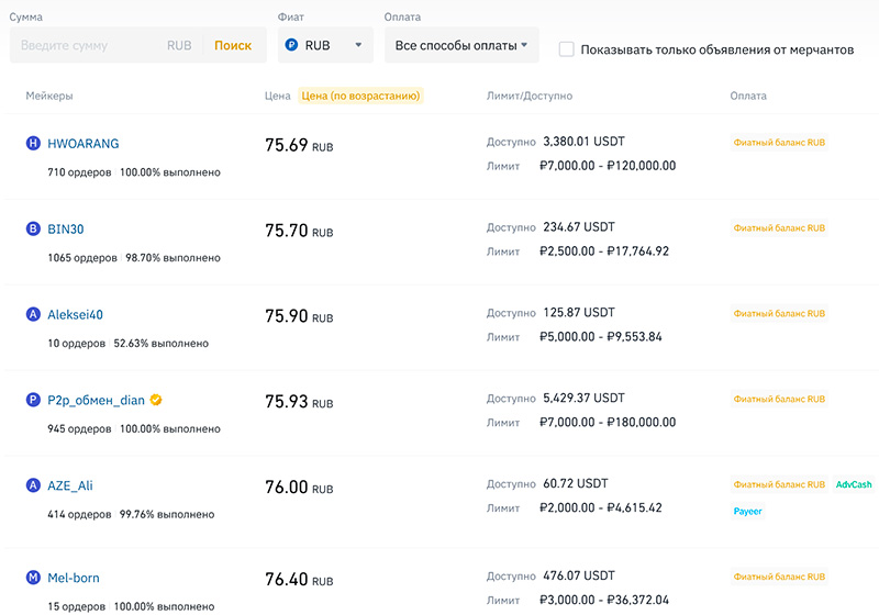 Как выбираем продавца? Ну, в принципе лучше, чтобы у продавца было достаточно много сделок (ордеров) и высок процент их выполнения, однако даже если у продавца немного ордеров, то это совсем не означает, что вас кинут - система защищенная, продавцы верифицируются. Так что просто выбирайте более привлекательный курс и достаточное количество. Если вы покупаете небольшие суммы, то обращайте внимание на минимальный лимит, который принимает продавец.