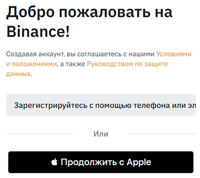 Зарегистрироваться можно по номеру телефона, адресу электронной почты или по учетной записи Apple.
