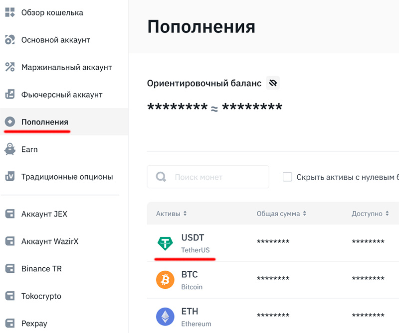 Я для теста перевел 200 USDT. Заходим в "Кошелек - Обзор кошелька", смотрим на "Основной аккаунт" - лежат на основном аккаунте.
