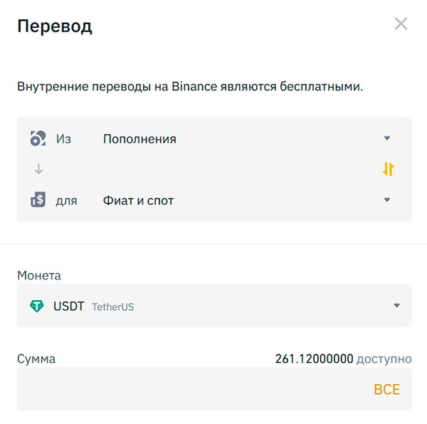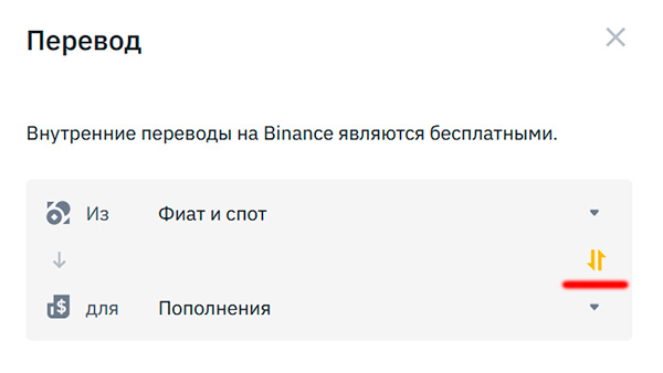 Там по умолчанию стоит перевод из "Фиата и спота" в "Пополнения", но мы нажимаем на пиктограмму смены источника и назначения, чтобы из "Пополнения" перевести в "Фиат и спот".