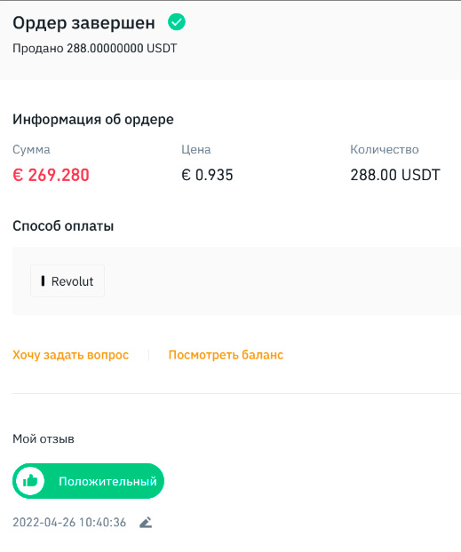Задача выполнена: рубли с российского банка мы по выгодному курсу обменяли на криптодоллары, а их с конвертацией вывели в евро на карту европейского банка.