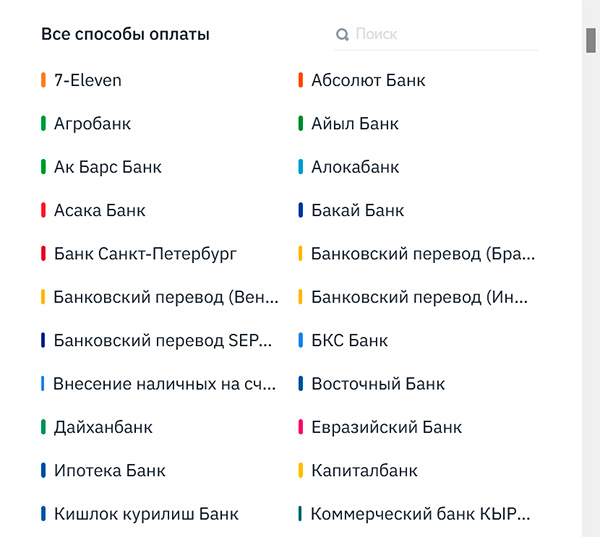 Теперь еще интереснее. Заходим в способы оплаты и выбираем подходящий. Там куча российских банков, ЮMoney, QIWI, с мобильного номера и даже внесение наличных.