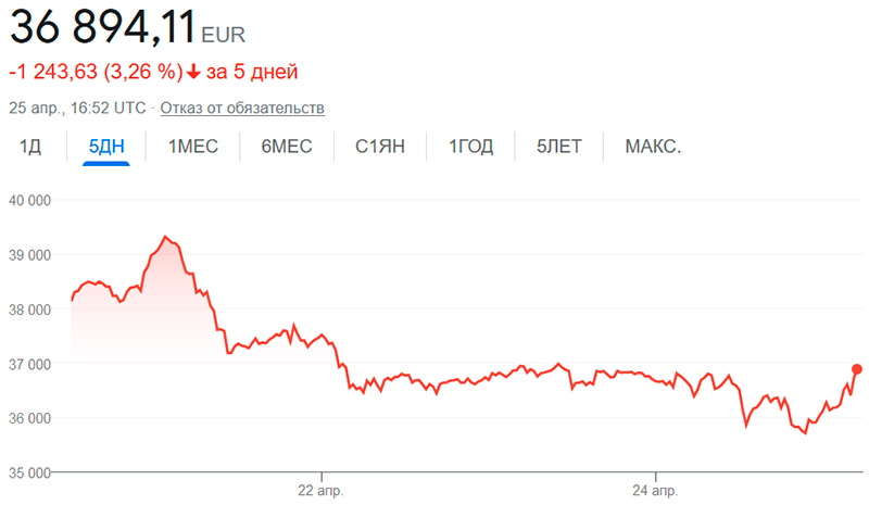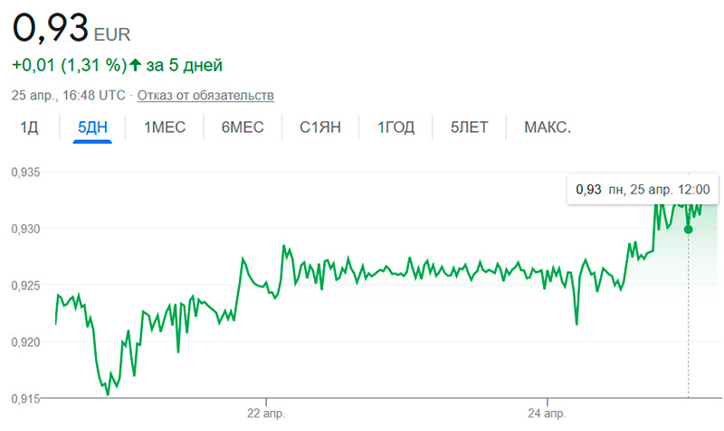 Вот, например, курс криптодоллара к евро за 5 дней.