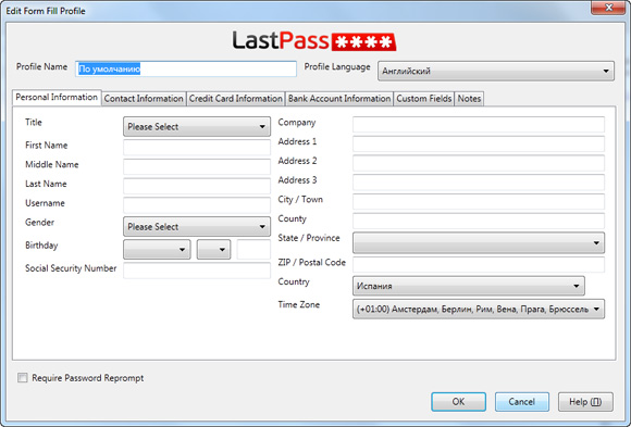 LastPass умеет запоминать и заполнять не только пароли. Часто на сайтах требуется вводить о себе кучу информации - дату рождения, пол, адреса и все такое. Вы можете заполнить эти данные в форме LastPass, и он потом из нее сам будет заполнять формы на сайте.