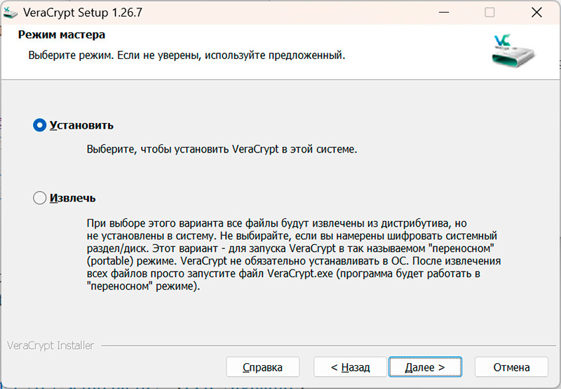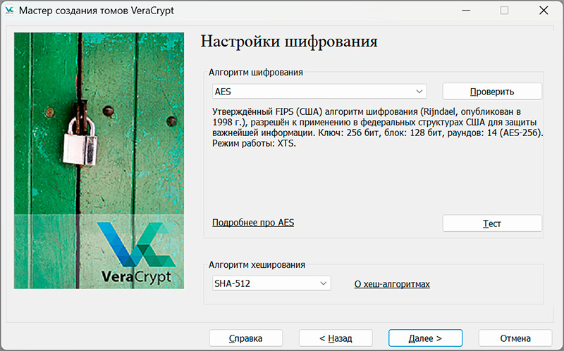 Выбираем опцию по умолчанию - даже обычный том VeraCrypt достаточно защищен.
