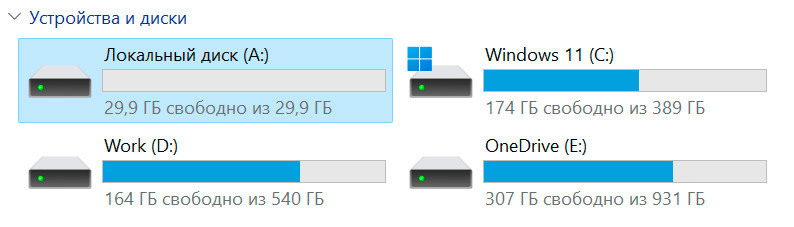 Если пароль введен правильно, то программе понадобится какое-то время на монтирование тома (обычно это занимает несколько секунд), после чего логический диск появится в системе. Я выбрал букву "А" - вот этот логический диск размером под 30 ГБ.
