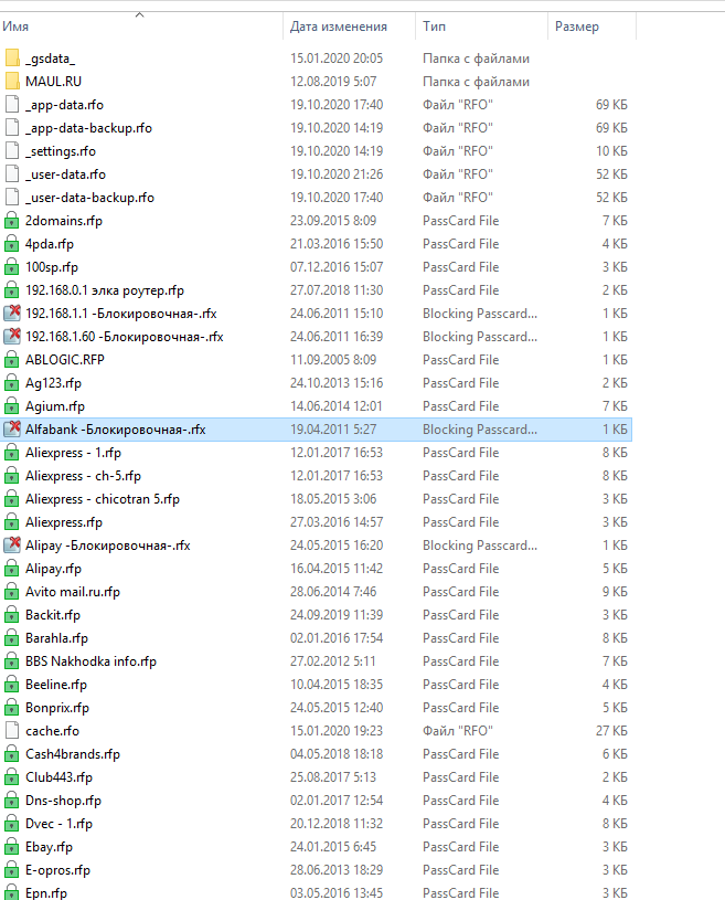 Такой метод хранения использовался до 8-й версии: на каждый пароль свой отдельный файл. 8-я версия перешла на хранение в одном файле.